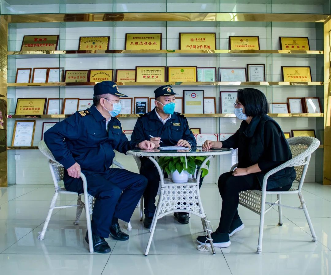 海關(guān)關(guān)員向出口危化品企業(yè)宣貫海關(guān)監(jiān)管政策
